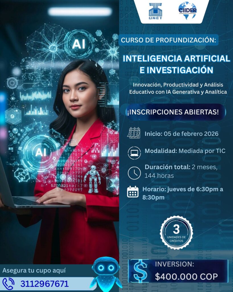 INVESTIGA CON INTELIGENCIA: Optimiza tu productividad académica con IA generativa y Analítica de Datos. CIIDER, ONG de cooperación internacional, en alianza con la Universidad del Táchira (UNET), anuncia la apertura de inscripciones para el curso de profundización: «INTELIGENCIA ARTIFICIAL E INVESTIGACIÓN: Innovación, Productividad y Análisis Educativo con IA Generativa y Analítica». Este programa surge como […]